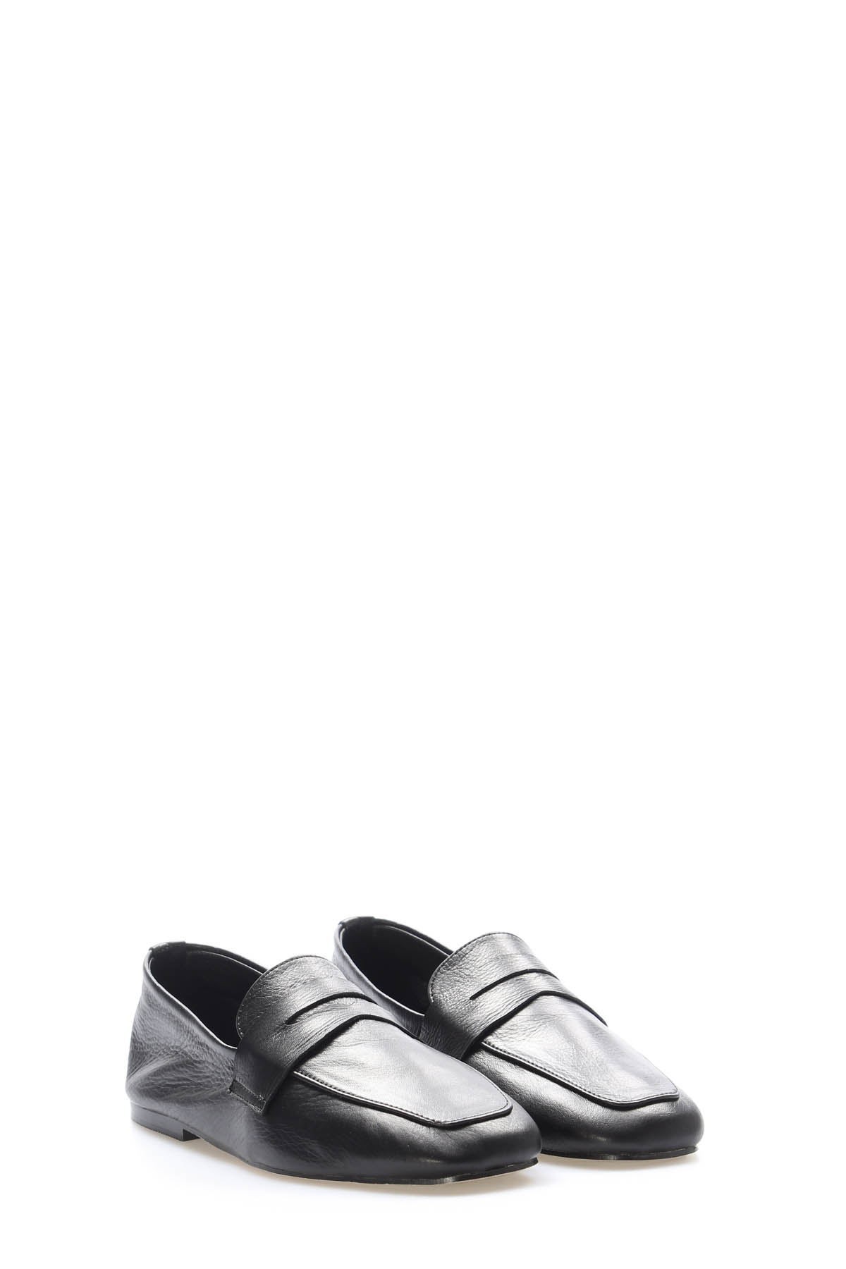 Tugerdi Siyah İçi Dışı Hakiki Deri Hafif Taban Kaliteli Klasik Kadın Babet Ayakkabı TG092102610413