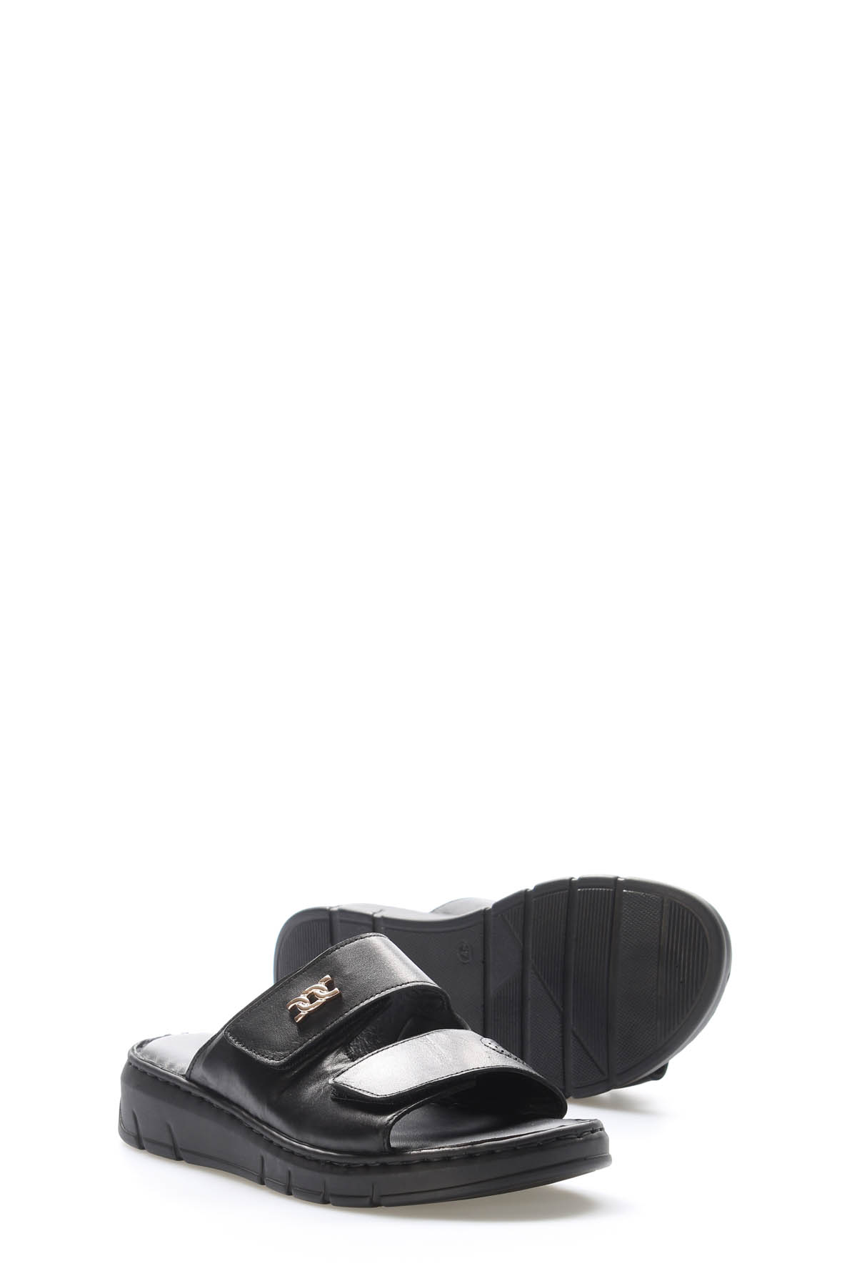 • Tugerdi Siyah Hakiki Deri Hafif Taban Klasik Kaliteli Kadın Terlik TG096212611509