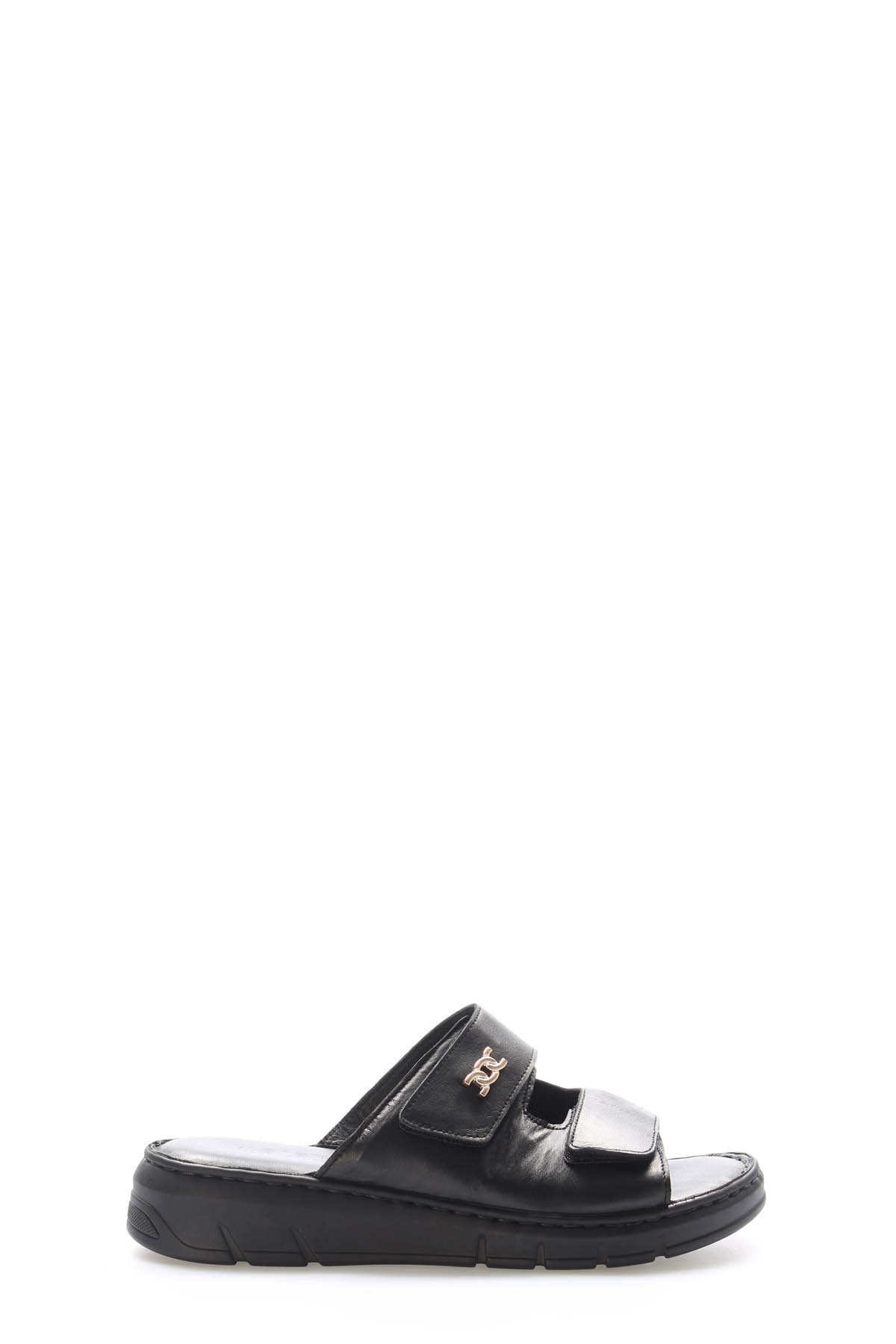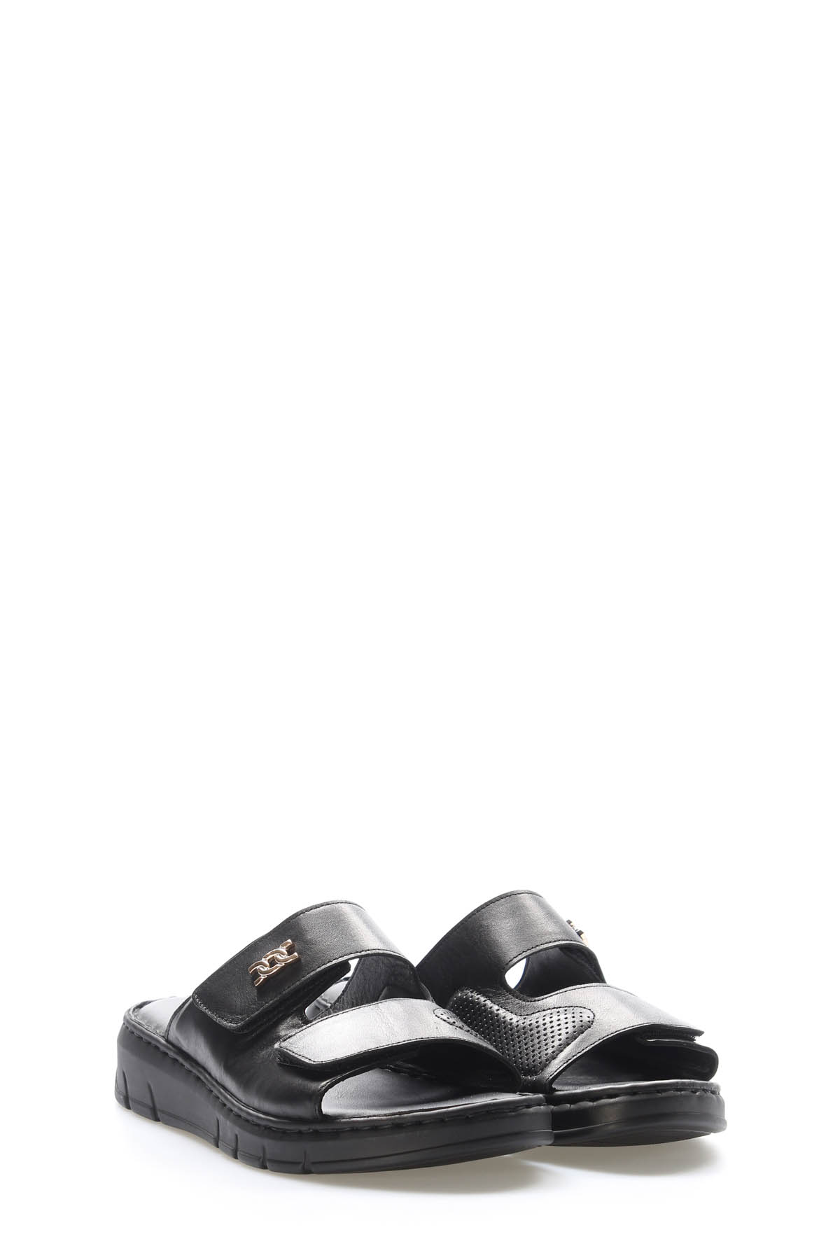 Tugerdi Siyah Hakiki Deri Hafif Taban Klasik Kaliteli Kadın Terlik TG096212611509