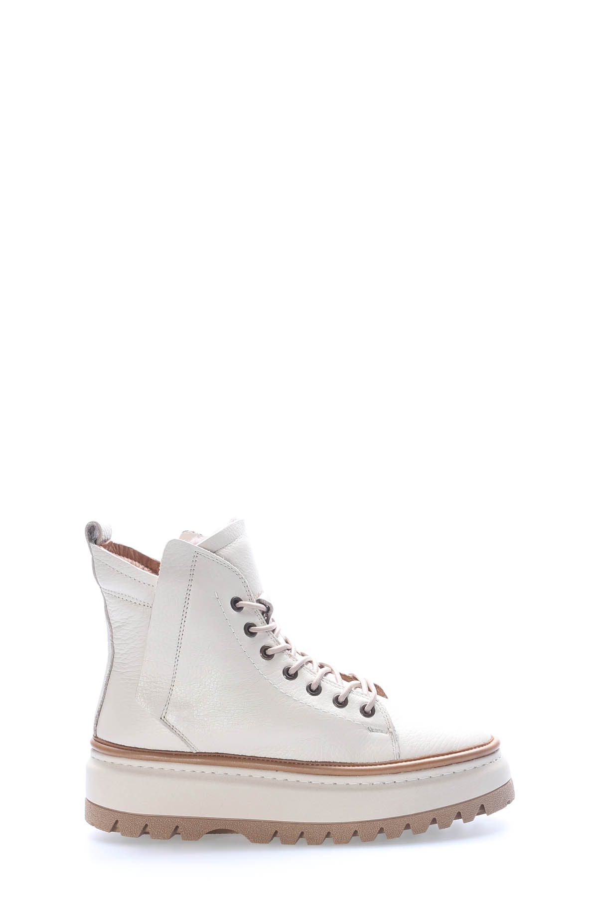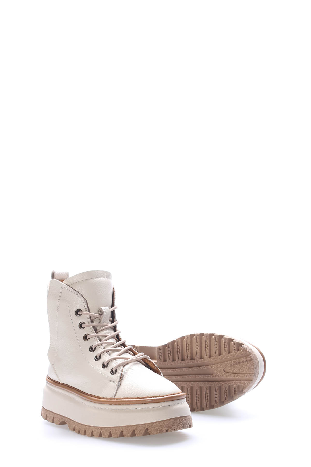 • Tugerdi Bej Hakiki Deri İçi Kürklü Hafif Taban Bağcıklı Klasik Kadın Bot TG09409112613531