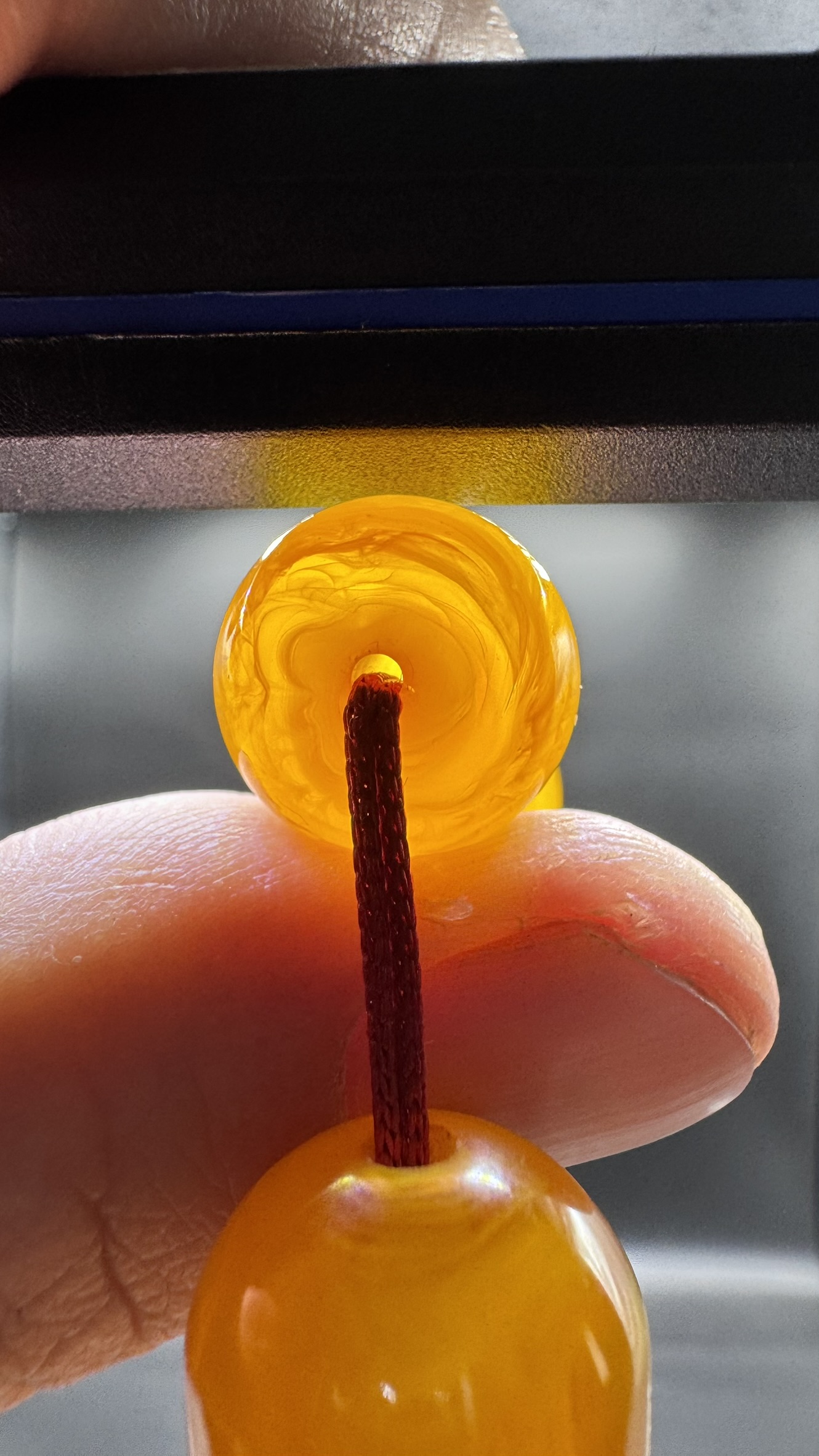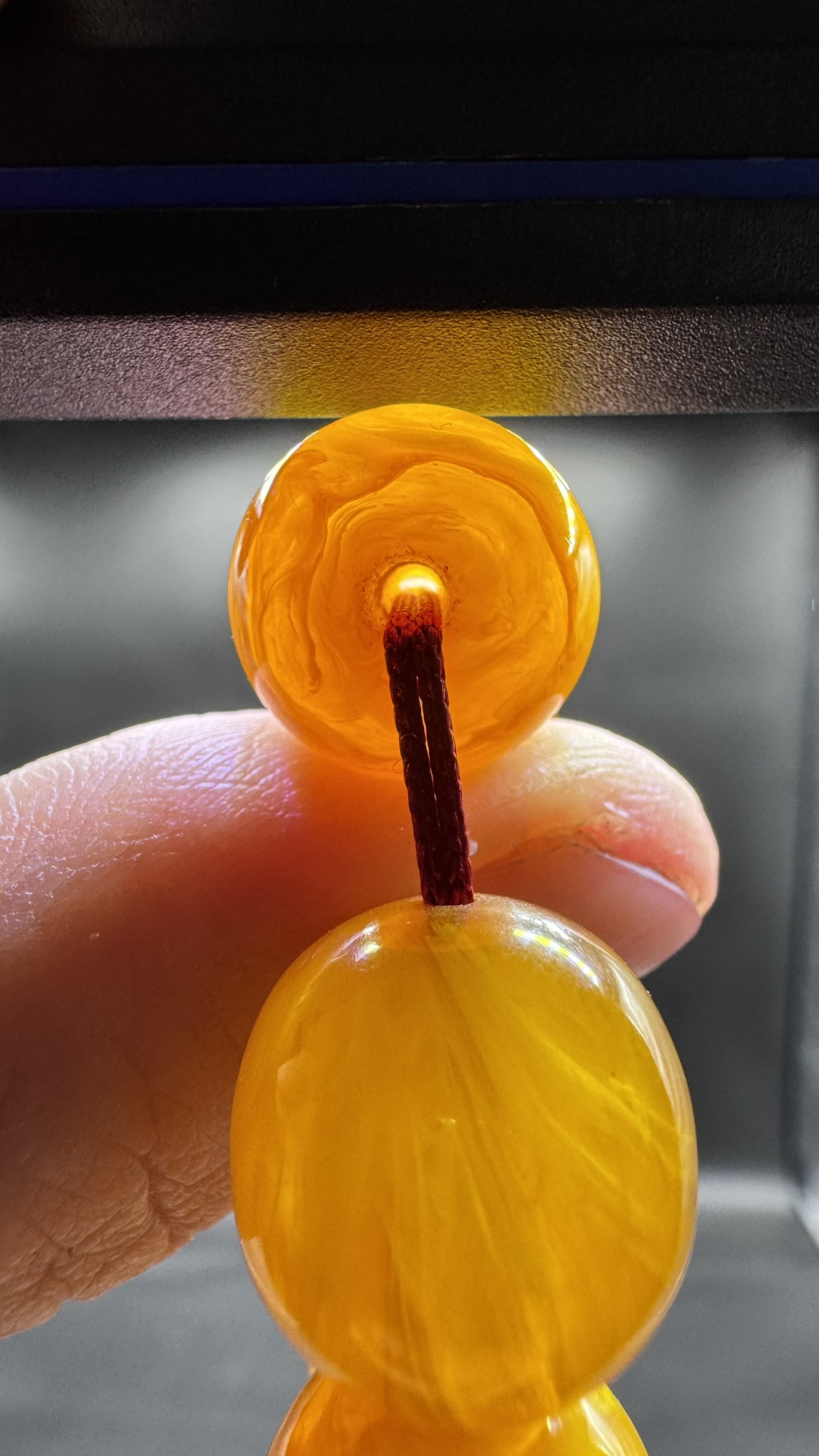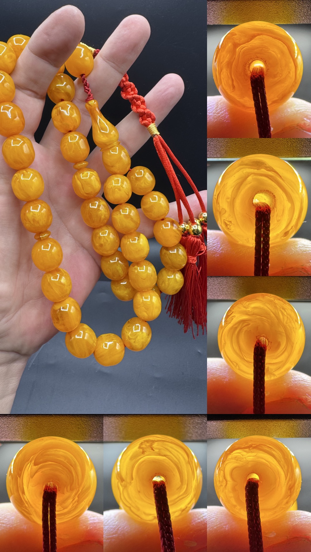 • Tespihimiz iç hare yapısı olarak hamur döküm kalitesi olarak Osmanlı sıkmadan ayırt edemeyeceğiniz dokuda ve güzelliktedir. Hamuru sert çıtır çıtırdır kesinlikle boya yoktur. hare yapısı bu şekilde firfirik veya rüzgargülü yapısında en son Osmanlı döneminde dökülmüş sıkma kehribarlarda mevcuttur. üst düzey koleksiyonluk üründür yıllar geçtikçe değerine değer katacak güzelliktedir.